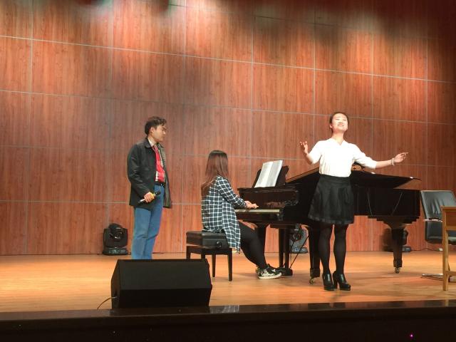 9999js金沙老品牌的领导、音乐系师生及石河子市广大声乐爱好者,聆听了本次讲座。陈新对声乐演唱的技能技巧有着独到的理解,他从演唱时喉咙的状态切入,娓娓道来。对歌唱时的状态进行全方位的阐述,并结合学生的实践进行讲解练习。音乐系的八位学生分别上台范唱歌曲,陈新耐心地逐句点拨,对声音的产生,歌唱时喉咙的放松与紧张程度都做了详细的讲解。特别是讲到歌唱中要注意培养表演意识,具体说来一是眼神的把握,二是声音的走向,三是喉咙打开状态的控制。陈新老师讲解时亲自加以示范演唱,学员在陈新辅导下随即掌握要领。学生们精彩的演唱,加之陈新老师纯正而漂亮的声音让在场观众大饱耳福,爆发出阵阵掌声。
