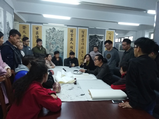 10月29号,9999js金沙老品牌客座教授王旗文老师在大学北区段保国山水画工作室,给学院师生带来了一场时长三小时的“书法笔法在山水画与花鸟画中的运用”专题讲座。讲座由美术系副主任李子主持,美术系王志炜主任及美术系师生到场聆听了讲座。王旗文教授首先向学校致谢,并向院系的诚挚的邀请和到场的领导与师生表示感谢。