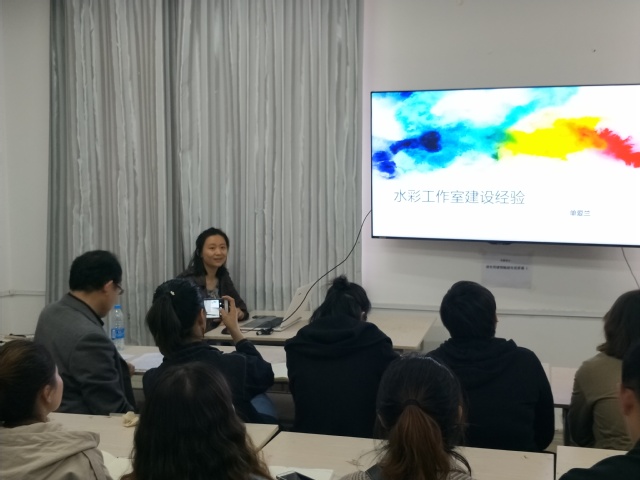 单爱兰老师跟美术系全体党员师生分享《水彩画工作室建设经验》