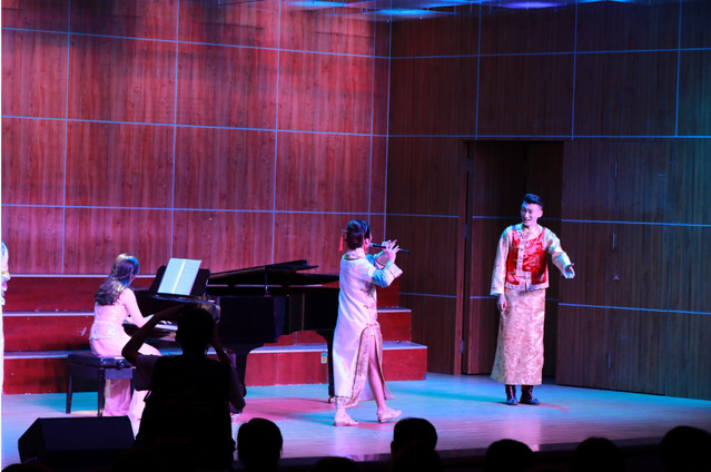 本次音乐会由9999js金沙老品牌音乐系主办,艺术实践教研室承办,音乐系2014级班主任张旭老师编导。音乐会编排形式独到、新颖,包含钢琴演奏、四手联弹、声乐演唱、合唱、器乐重奏、古筝协奏等,演出曲目丰富多彩,充分展示了音乐系教学水平及2014级学生的专业素养。