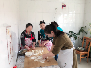 一家人围在厨房的灶台边,金懿娜的妈妈负责揉面和面,党校办的洪海燕老师负责擀饺子皮,杜老师和景格格老师负责包饺子,金懿娜负责煮饺子,金懿娜的爸爸提议说:“咱们在饺子里包几个硬币吧,看看谁最幸运在新年吃到这个硬币饺子”,一大家子人围在灶台边说说笑笑,十分热闹。杜老师说:“平时忙于工作,很少自己在家做饭,但也很想念家里的味道,今天在亲戚家一起包饺子,吃饺子,终于实现了这个愿望。”金懿娜妈妈手中的面剂子传递到洪老师手中成了一个圆圆的饺子皮,一个个饺子皮传递到杜老师和景老师手中成了一个个胖胖的饺子,再经过金懿娜的手中成了一盘盘煮熟的散发着诱人香气的热腾腾的饺子,饺子在手中传递着,心在这个过程中不断拉近着,一家人就像这饺子一样团团圆圆的欢聚一堂。