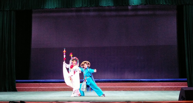 2019年8月30日凌晨,非遗中心主任李钦曾及音乐与舞蹈系主任杜瑶、副主任吕宝文一行赶赴昌吉州艺术剧院考察新疆曲子戏,时逢中央电视台摄制组在昌吉州艺术剧院录制新疆曲子戏,双方共同欣赏了曲子剧团上演的新疆曲子戏传统剧目《小放牛》、《裱花》、《张琏卖布》。