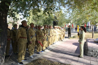 活动以“凯歌进新疆”拉开帷幕。全体师生在距离“军垦第一连”3.7公里的地方下车,徒步前往目的地,并要求35分钟内到达。行程中,有的同志体力不支,但同行者“不抛弃、不放弃”,坚持不让每一位同志掉队,最后胜利到达终点;有的同志主动帮助体弱的老师学生背东西,如哈萨克族学生泽英看到杨高平老师背包很重,便主动要过了他的背包。全体师生体现了“团结一致、锐意进取”的精神。