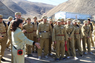 走进“军垦第一连”,大家认真地参详每一件展示兵团历史的器物,讲解员生动的讲解,亦如铺开了一张生气盎然的历史图卷,昔日艰苦而热闹的劳作场景,涌现在大家眼前。大家更深刻地感受到了兵团成立之初“不与民争利,不与民争水,不与民争地”的原则,处在“风头水尾、沙漠边缘、边境一线”戍守边疆、建设边疆的那份艰难与伟业,也以现在兵团人的切身体悟,坚定了传承“军垦精神”的信念。