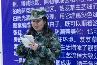 第十三师红山农场学员领队任兵首先向院方领导对培训学员的无私关怀表示诚挚的感谢;其次,他说在此之前芨芨草多用来制作扫把和一些简单的农具,这次培训对于芨芨草产业的发展具有重要的意义,这次培训会极大地提升芨芨草产业的产品附加值;再次,这次培训对于第十三师红山农场的学员来说也具有重要的意义,在这个培训班上大部分学员将完成从家庭妇女到手工艺人的转变,这批学员将成为芨芨草编织产业的种子,为十三师芨芨草编织产业的发展和精准脱贫事业发挥重要的力量。