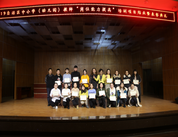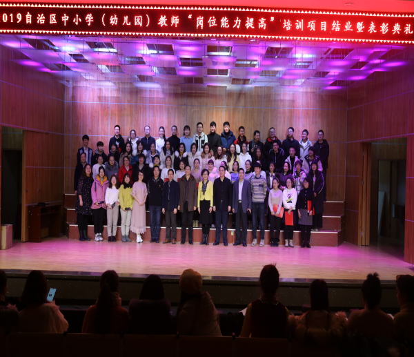 2020年1月1日,学院在中区音乐厅举办2019年自治区中小学(幼儿园)教师“岗位能力提高”培训结业暨表彰典礼。学院党委班子全体成员及项目首席专家、班主任、任课老师及116名培训学员参加了典礼。