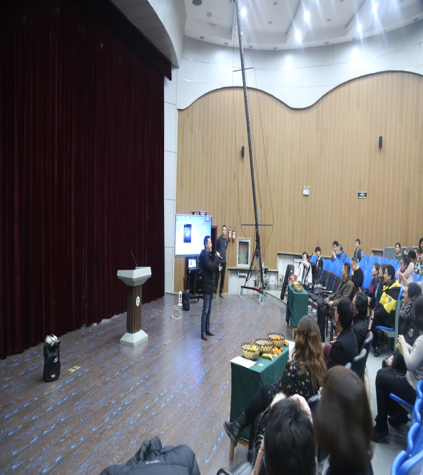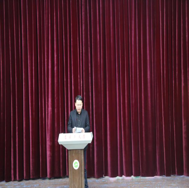 夜幕降临,华灯璀璨,演播厅内笑语盈盈、欢声阵阵,洋溢着如春的暖意和喜庆的节日气氛,活动由学院党政办主任石利娟主持,首先学院副院长杨向奎发言致辞,结合新中国成立70周年及“不忘初心、牢记使命”总结了学院2019年度工作取得的各项成果,他表示,之所以学院能取如此成绩,离不开学院党委领导的引领,也离不开全院教职工的共同努力,马上要迎来2020年,在新的一年中,希望我们再接再厉,共创辉煌。