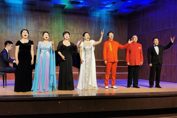 民族唱法的石宏老师演唱的《大红公鸡毛腿腿》、《甘肃老家》,旋律优美,歌声动听,赢得了全场观众的喝彩。