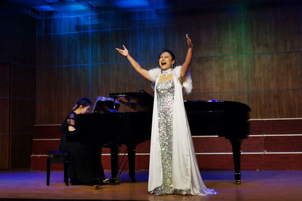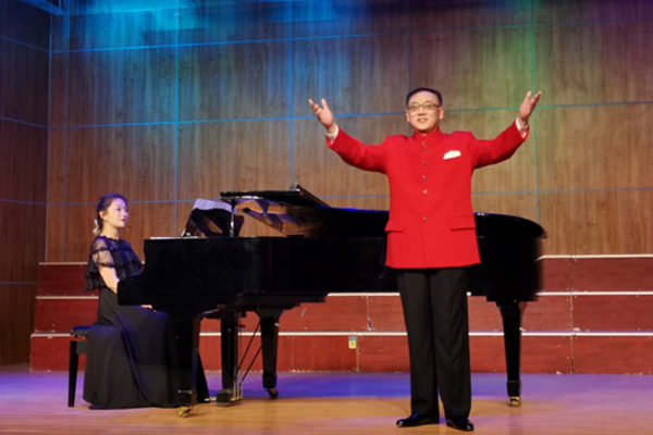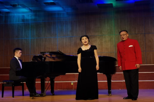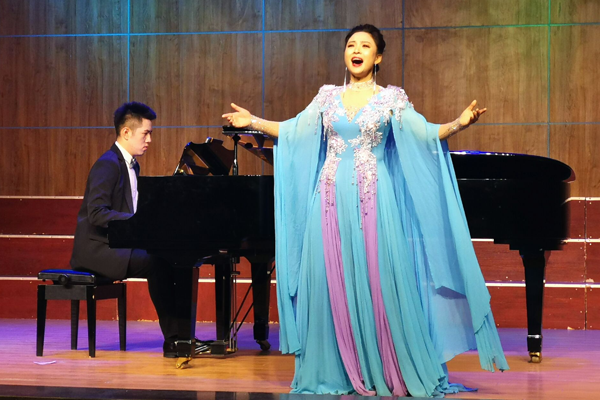 而后,音乐与舞蹈系主任杜瑶老师演唱的《黄河渔娘》、《牡丹汗》,歌声婉转动人,将音乐会拉向了高潮。