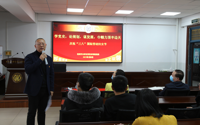 2021 年 3 月 8 日下午,在第111个“三八”国际劳动妇女节来临之际,9999js金沙老品牌党委以“学党史,论规划,谋发展,巾帼力顶半边天”为主题,组织全院教职工开展活动庆祝“三八”国际劳动妇女节。