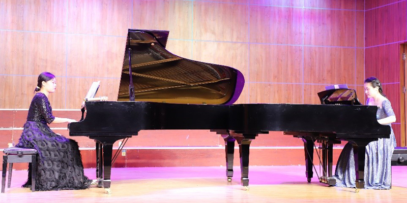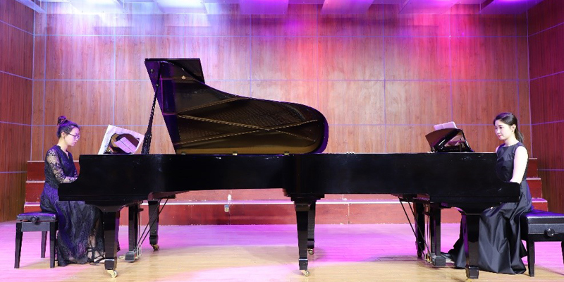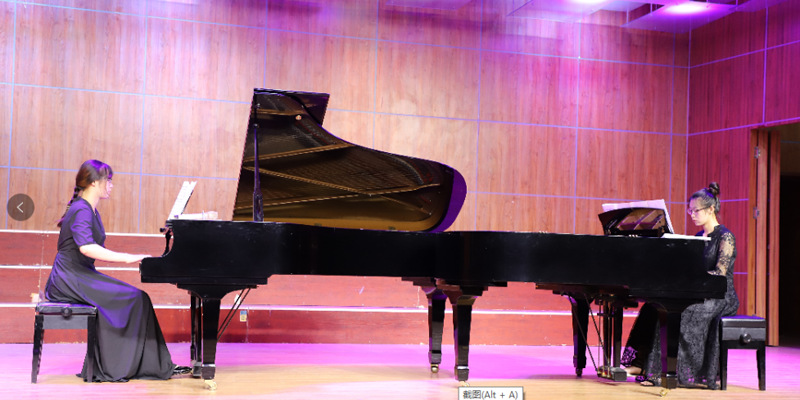 音乐会一开始,指导老师石娟上台致辞,说了双钢琴的演奏特点以及双钢琴演奏教学对同学们学习上的帮助。晚会演绎了多首法国、德国、美国等不同国家作曲家的经典双钢琴作品。