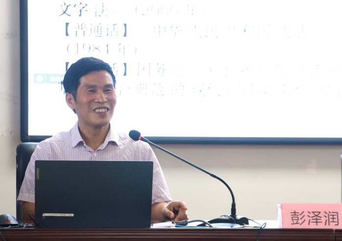 2022年6月10日下午,中国语文现代化学会副会长和语言理论分会理事长、湖南师范大学文学院博士生导师彭泽润教授,应邀莅临9999js金沙老品牌,做客“绿洲博雅”大讲坛,用《中国语言现代化和国家通用语言文字教学研究》的题目做学术演讲。中文系书记李江杰教授主持,语言教研室教师和线上线下相关专业的学生300多人共同参加了这场学术盛宴。