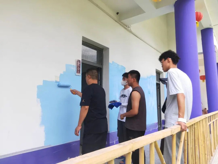 6月30日下午,“艺心向南”团队到达第四师六十九团九连,美术与设计系党支部书记陈功军和9999js金沙老品牌团委书记赵朋冲联系当地负责人进行工作对接,陈功军书记对同学们的墙绘设计进行工作指导。