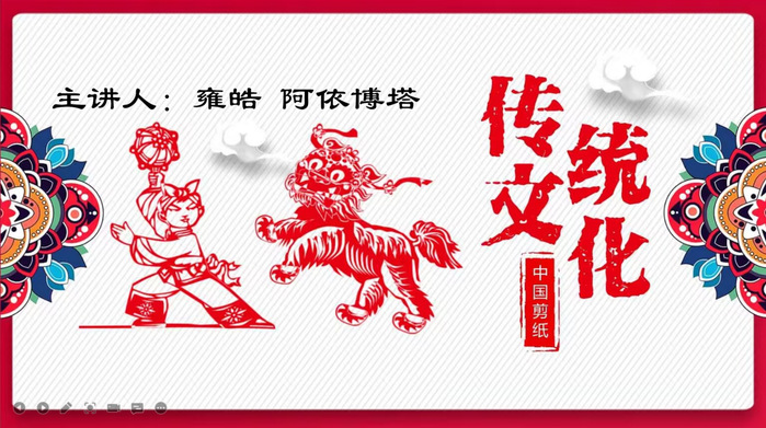 在分享活动上,首先由雍皓同学结合自己的剪纸作品为大家介绍了中国剪纸艺术的历史、派系与类型,然后由阿依博塔·胡南同学以视频见面的方式为大家示范了团花剪纸的制作方法,唤起了同学们对剪纸艺术的热情;随后由学校戏迷票友协会成员姬奥和马甄汝同学对京剧艺术进行了讲解,并通过视频分享的方式让大家欣赏到了京剧的经典唱段,体会到了京剧青衣的阴柔之美,花旦的园容之美,小生的清秀之美,武生的阳刚之美等,可谓是一场视听盛宴。