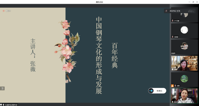 张薇副教授首先讲述了中国钢琴文化早期发展的背景。早在1601年,意大利传教士利玛窦就进京将古钢琴献给明神宗。清末时沈心工、李叔同两人在留学日本后回国任教,其带回的钢琴初级教学的主要教本为中国钢琴的规范初级教学打下良好基础。而后早期的中国钢琴专业演奏与教学活动也使钢琴这一新的音乐文化得到了有效发展。
