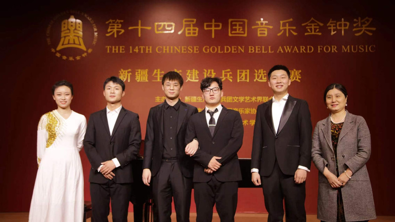 歌声娓娓绕梁,心潮澎湃激昂。音乐会由女声独唱《地窝子》拉开序幕,演唱和表演将兵团儿女艰苦奋斗的优秀品格表达得淋漓尽致;紧接着音乐会上演了《高高的白杨》《奶茶歌》《莫尼山》《兵团的心》《天山儿女》《我的琴声》《默默等到天亮》等歌曲,周梅梅老师的学生刘祎、高东政、刘梦伟、刘子龙、唐怡岚等同学为在场观众带来一场精彩的音乐视听盛宴。