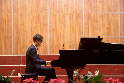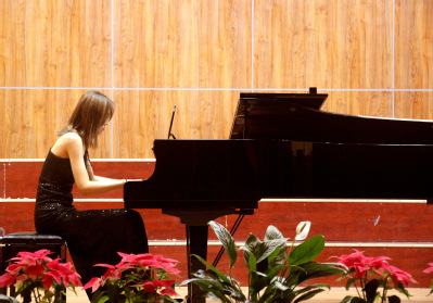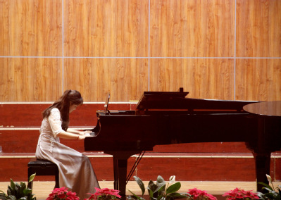 每一次音乐会,石娟老师都会选择不同音乐体裁的音乐作品,意图是让学生和听众多了解不同文化背景下产生的不同风格的作品。本次“圆舞曲之夜音乐会”就为我们展示了各式各样的圆舞曲,有的节奏明快、旋律流畅,有的徐缓抒情,富于情感。圆舞曲的前身是奥地利民间的兰得勒舞曲。圆舞曲在兰得勒舞曲基础上发展而来的一种三拍子舞蹈,跳舞时一对对男女舞伴,按照舞曲的节奏旋转打圈,动作轻快、优美,情绪热烈、欢快。这些特点决定了圆舞曲的体裁特征:速度较快,配合上环绕支点音旋转的音调,便生动地产生旋转打圈的动作感。其典型的伴奏音型是强弱分明的三个均匀的四分音符(在拍则是八分音符),每小节一个和弦,第一拍是强拍,奏和弦的低音。第二、三拍是弱拍,在较高音区奏其它和弦音。