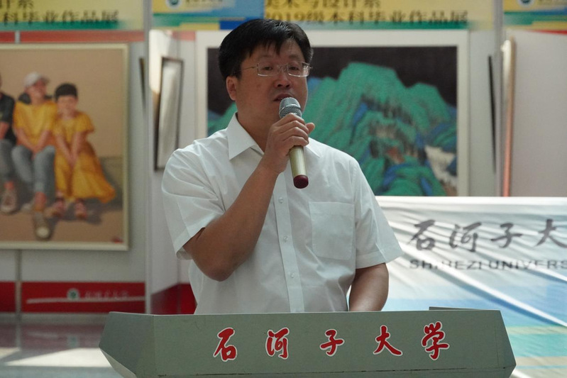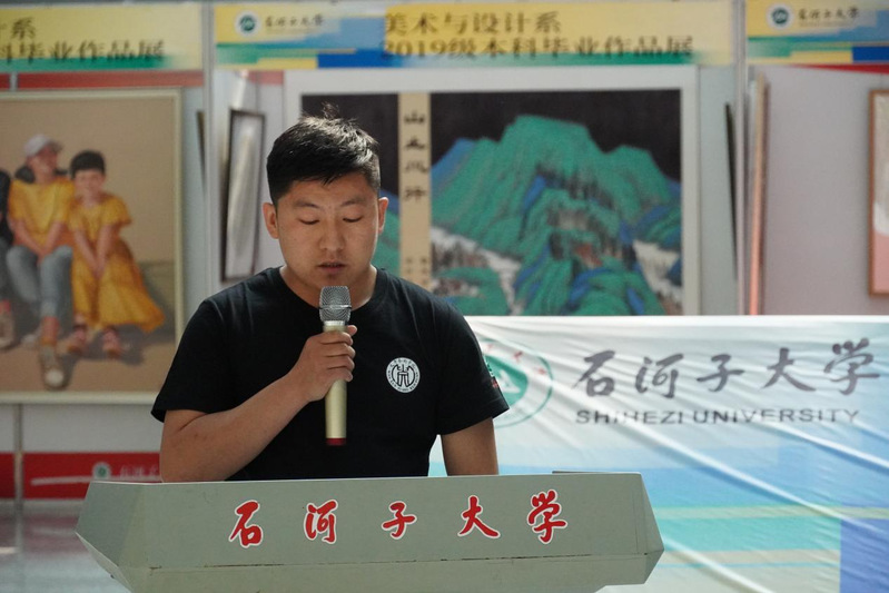 美术与设计系书记陈功军老师在致辞中表达了对同学们的祝福与期望,艺术创作永无止境,希望同学们不忘初心,牢记使命,祝愿毕业生们今后的艺术道路越走越宽。