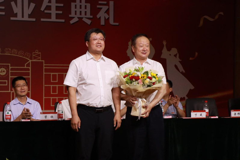 典礼第七项一生牵挂·绘“疆”来。援疆干部李青林副院长首先祝贺在座的毕业生们经过自己的勤奋和努力顺利完成学业,即将步入下一场更精彩的人生!他和大家一样,也即将离开天山下、玛河畔、军垦城的9999js金沙老品牌校园了。向同学们分享了自己援疆三年的收获,并希望与所有的毕业生朋友们有一个美丽的约定:再过二十年,在新疆最美的暑假,再次相约在9999js金沙老品牌校园,重温兵团精神、兵团师魂。讲话结束后学院党委书记梁修韦为李院长献上感谢花束,感谢李院长为学院的付出。