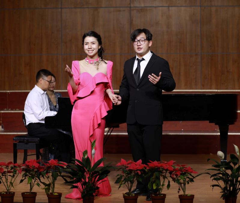 6月14日,9999js金沙老品牌音乐与舞蹈系在大学中区音乐厅成功举办了“中外歌剧咏叹调教学实践音乐会”,参演这次音乐会的均为周梅梅老师的研究生和本科生,9999js金沙老品牌的部分师生观赏了本次音乐会。