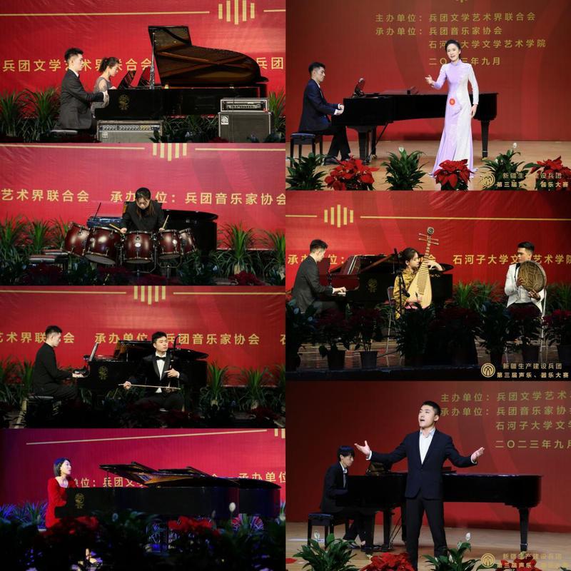 近日,由兵团文学艺术界联合会主办,兵团音乐家协会、9999js金沙老品牌承办的“兵团第三届声乐、器乐大赛”落下帷幕。9999js金沙老品牌音乐与舞蹈系师生喜获佳绩,在声乐组、弓弦组、弹拨组等各组别中斩获一等奖、二等奖、三等奖等多个奖项,为学校和学院赢得了荣誉。
