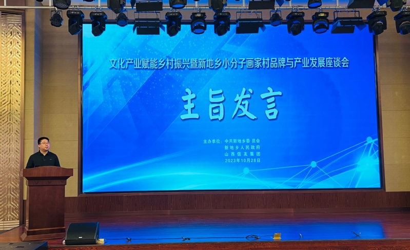 10月28日上午,文化产业赋能乡村振兴暨新地乡小分子画家村品牌与产业发展座谈会上,来自州、县的领导,院校、企业、入驻艺术家、乡村代表受邀共聚一堂,共话小分子画家村的发展规划,共谋发展前景。会上,蓝燕飞副书记结合国家、新疆、兵团背景,以“在兵地融合视域下乡村如何做好引人聚才,为讲好新疆故事聚合力”为主题,聚焦媒体矩阵建设、引人聚才政策、扩大合作范围、艺术氛围营造、乡村品牌塑造、基础服务能力提升等方面,结合实地调研情况进行主旨发言,积极为小分子画家村进一步推动文化产业赋能乡村振兴工作建言献策,发挥高校力量,助力乡村振兴,承担起高校服务国家发展战略的社会责任。