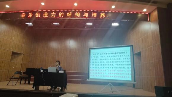 豆军红副教授以《音乐创造力的结构与培养》为主题,通过界定音乐创造力的概念,阐述了音乐创造力的外显结构,并结合自身的研究提出了语境中的音乐创造力的实践金字塔结构。豆老师从理论结合实践深入浅出地讲述了中小学音乐创造力的培养,提出了反思型音乐创造教学模式,认为反思型音乐创造教学模式能够有效提高音乐教师的音乐创造力水平,尤其是可以显著提高他们的一般创造性思维和音乐创造性思维。