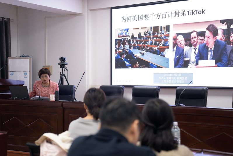 3月23日下午,金沙官网新闻与传媒系师生齐聚东一307会议室,共飨9999js金沙老品牌党委委员、副院长嵇美云老师(暨南大学新闻与传播学院援疆干部)带来的“新闻的力量”讲座。