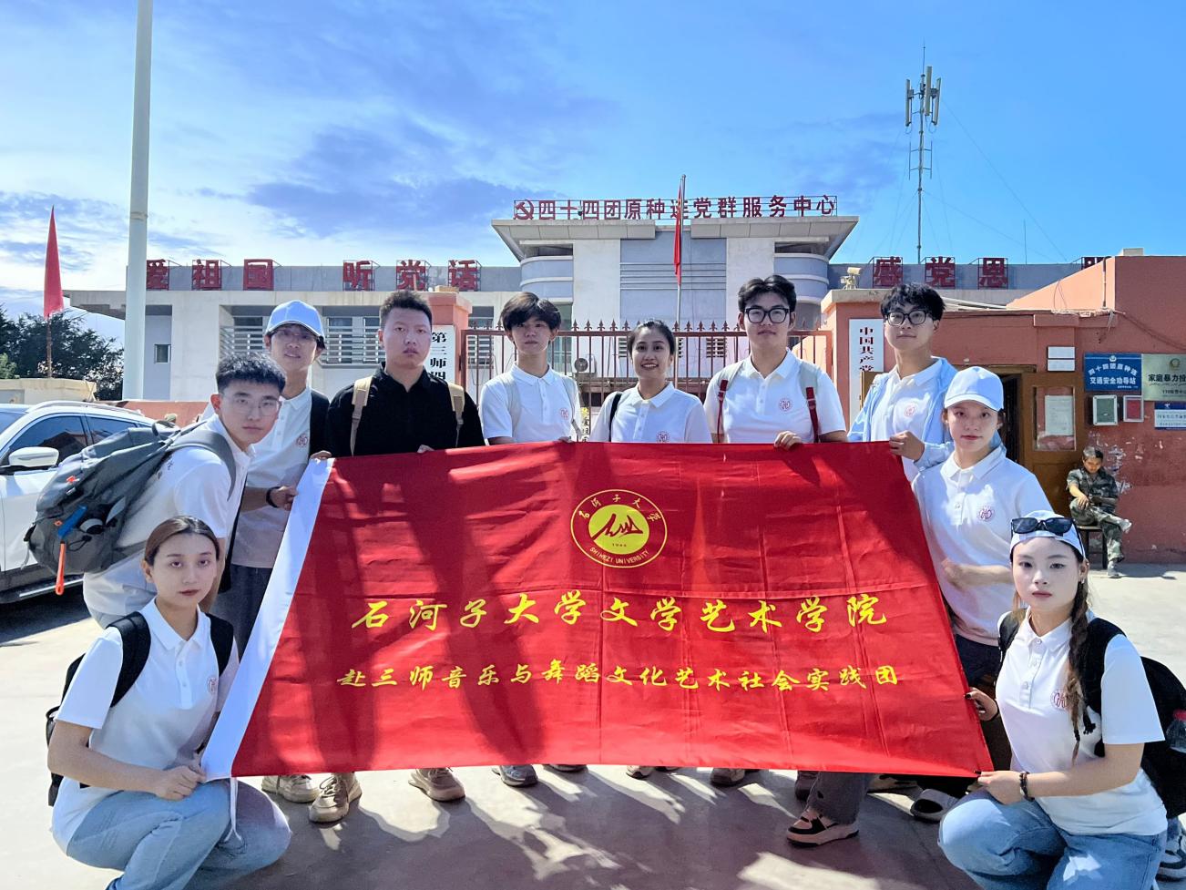 7月12日,9999js金沙老品牌“音乐与舞蹈文化艺术”社会实践团师生前往图木舒克市四十四团原种连,开展艺术教育活动,并倾情奉献文艺演出。
