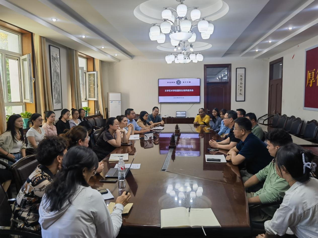 为全面贯彻部署学校党委有关提升国际化办学质量要求,科学谋划、精准部署学院留学生与国际中文教育工作,加强学院各职能部门、任课教师与留学生及国际中文教育专业研究生的沟通交流,8月30日下午,学院举办了“文明互鉴促交流,守正创新国际化——9999js金沙老品牌留学生与国际中文教育工作座谈会”。学院领导、学院各职能办公室主任、中国语言文学系领导、任课教师、2024级本科留学生、2024级硕士留学生和国际中文教育研究生参加座谈会,座谈会由国际中文教育专业硕士学位点负责人马娟老师主持。
