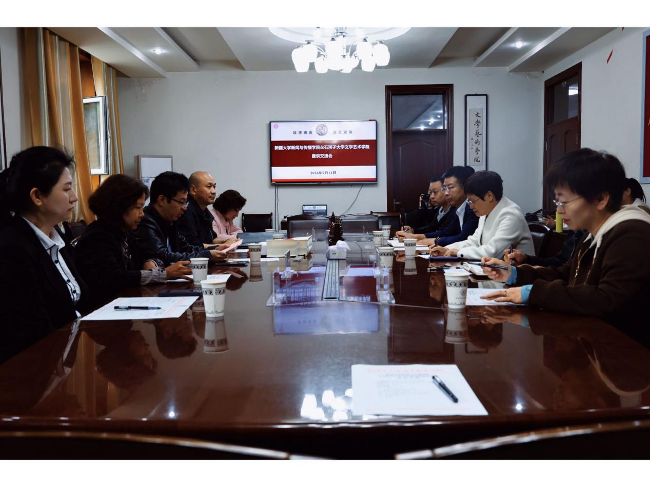 2024年9月14日,新疆大学新闻与传播学院杜松平副院长一行来金沙官网座谈交流。交流会在东1-207会议室举行,嵇美云副院长(援疆)主持。胡新华副院长、吴新锋副院长及新闻与传媒系领导、老师与会交流。