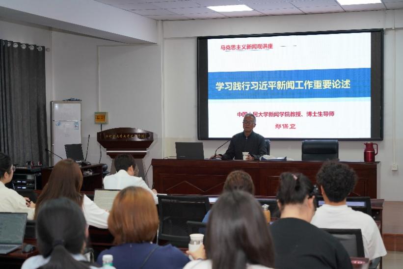 郑保卫教授以其深厚的学术造诣和丰富的实践经验,为师生们解析了自党的十八大以来,习近平总书记在宣传思想文化和新闻工作领域的一系列重要论述。他将习近平新闻工作重要论述的核心和精髓总结为“党媒姓党”“人民至上”以及“党性与人民性的统一”。