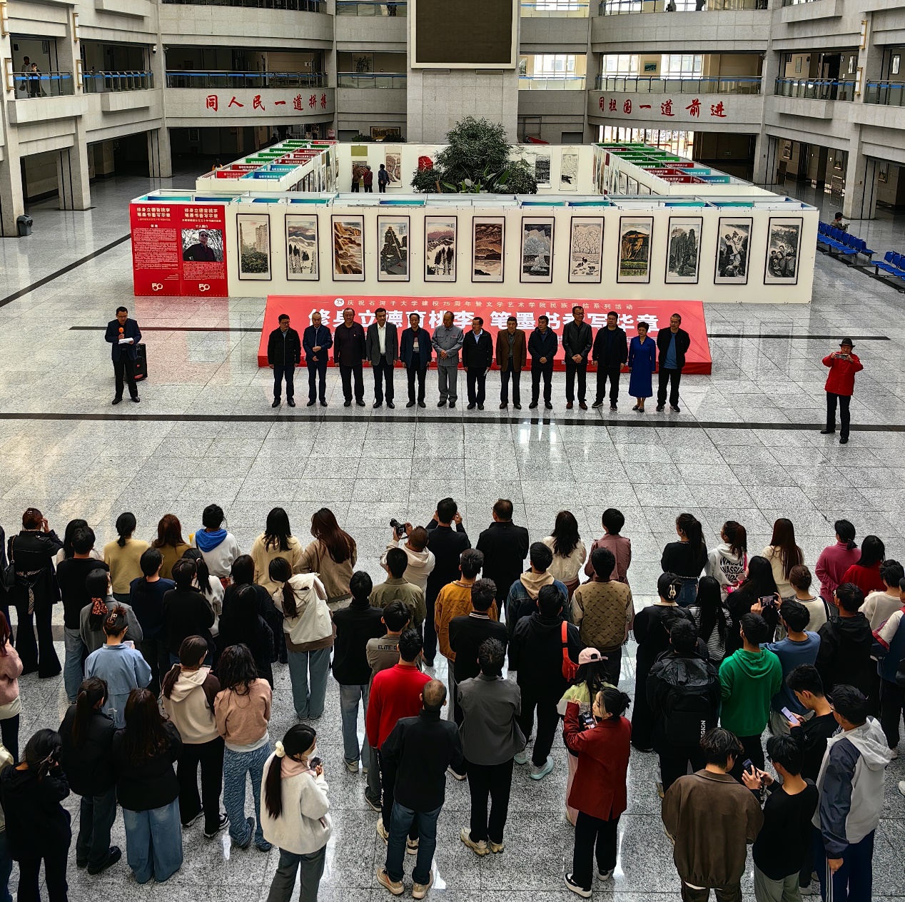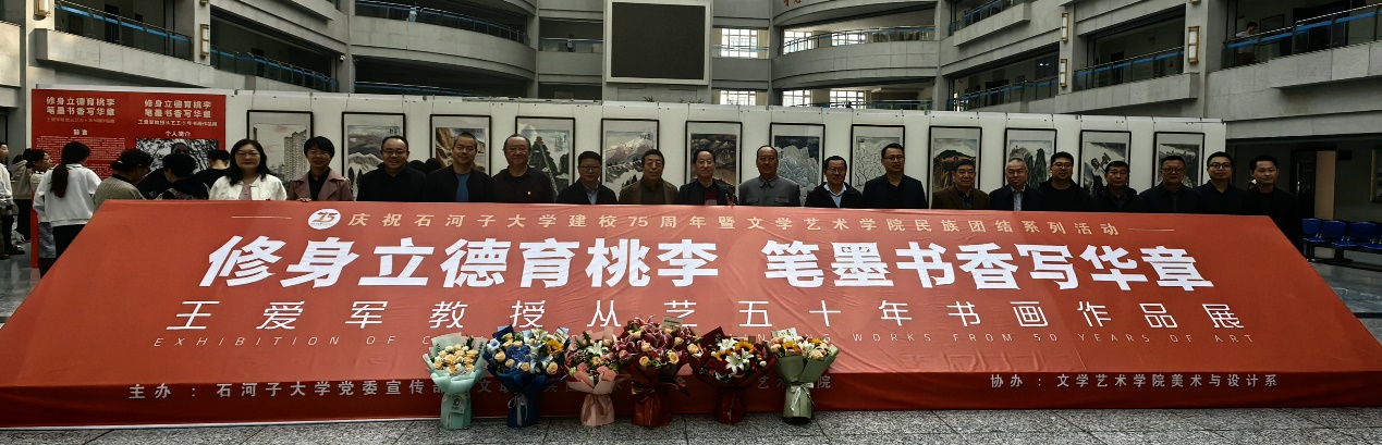 10月12日上午,修身立德育桃李,笔墨书香写华章——王爱军教授从艺50年书画作品展在9999js金沙老品牌博学楼开幕。本次展览由9999js金沙老品牌党委宣传部、文联、兵团美术家协会、9999js金沙老品牌主办,美术与设计系协办,共展出王爱军教授不同时期的艺术精品100余件。