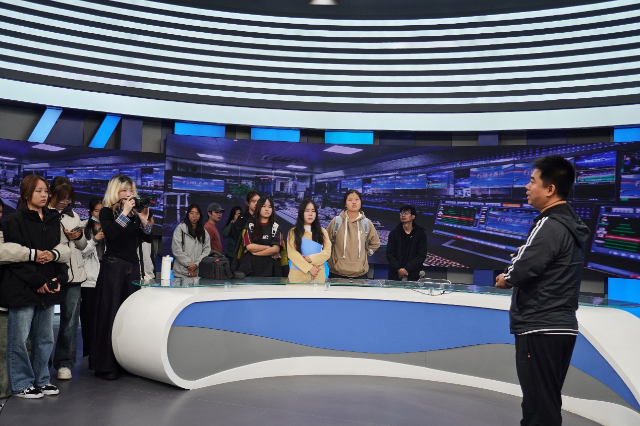 近日,新闻与传媒系广播电视学专业2023级1班全体同学在《新闻播音》课程任课老师张宁带领下,到石河子市融媒体中心开展了一堂别开生面的实践学习。此次观摩,旨在让同学们秉持知行合一精神,做到真正学以致用,用以促学,学用相长。